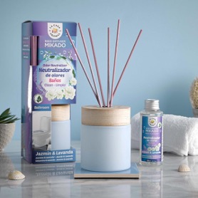 En caso de que tu baño presente olores indeseables y haga que ir al baño sea una experiencia desagradable, tu mejor aliado para el baño es el Mikado Neutralizador De Olores Especial Baños, Jazmín y Lavanda. Este ambientador absorbe y neutraliza el mal olor, estupendo si quieres convertir la frescura suave del jazmín y la lavanda en el protagonista de la estancia.