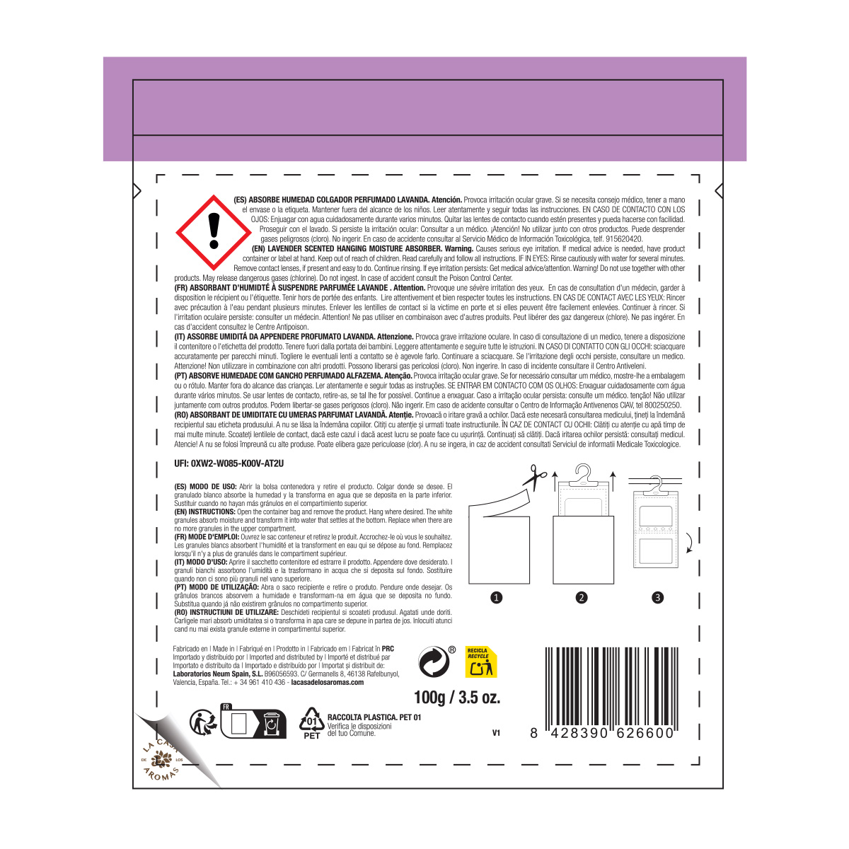 Al abrir el envase sale un aroma a lavanda sutil y fresco. Muy recomendable este producto para lugares donde haya humedad.