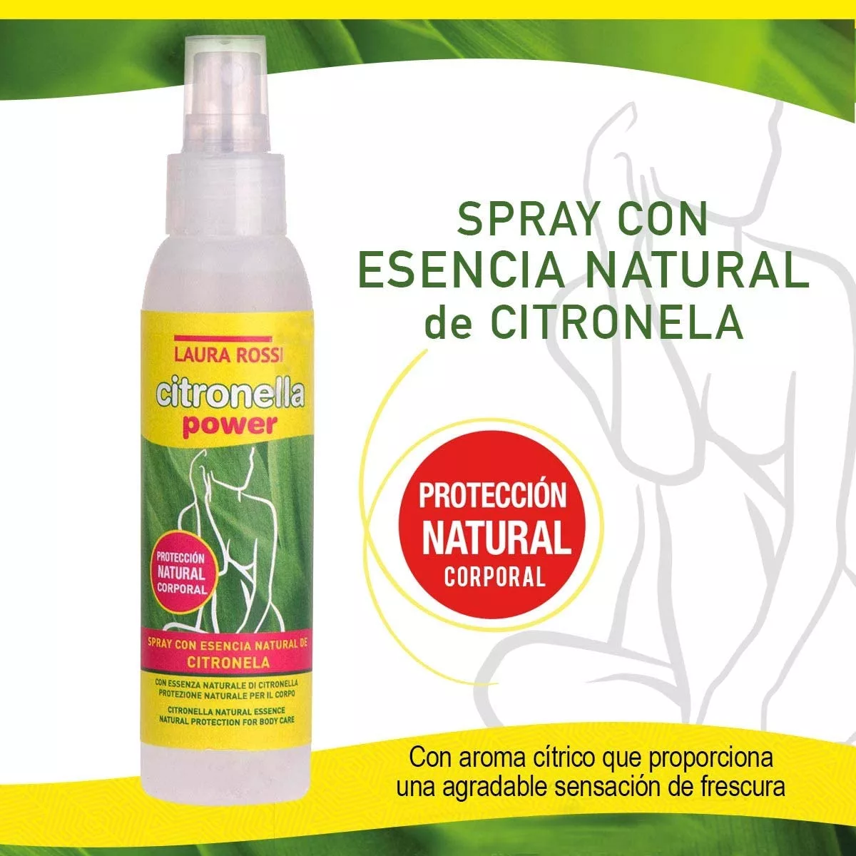 Contiene esencia natural de citronela que aporta hidratación y no engrasa la piel.