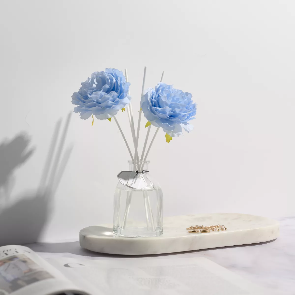 Retirar el tapón de la botella. Colocar la Flor decorativa y las varillas en el recipiente para que absorban y desprendan la fragancia. Girar boca abajo las varillas para aumentar la intensidad usando guantes para su manipulación.