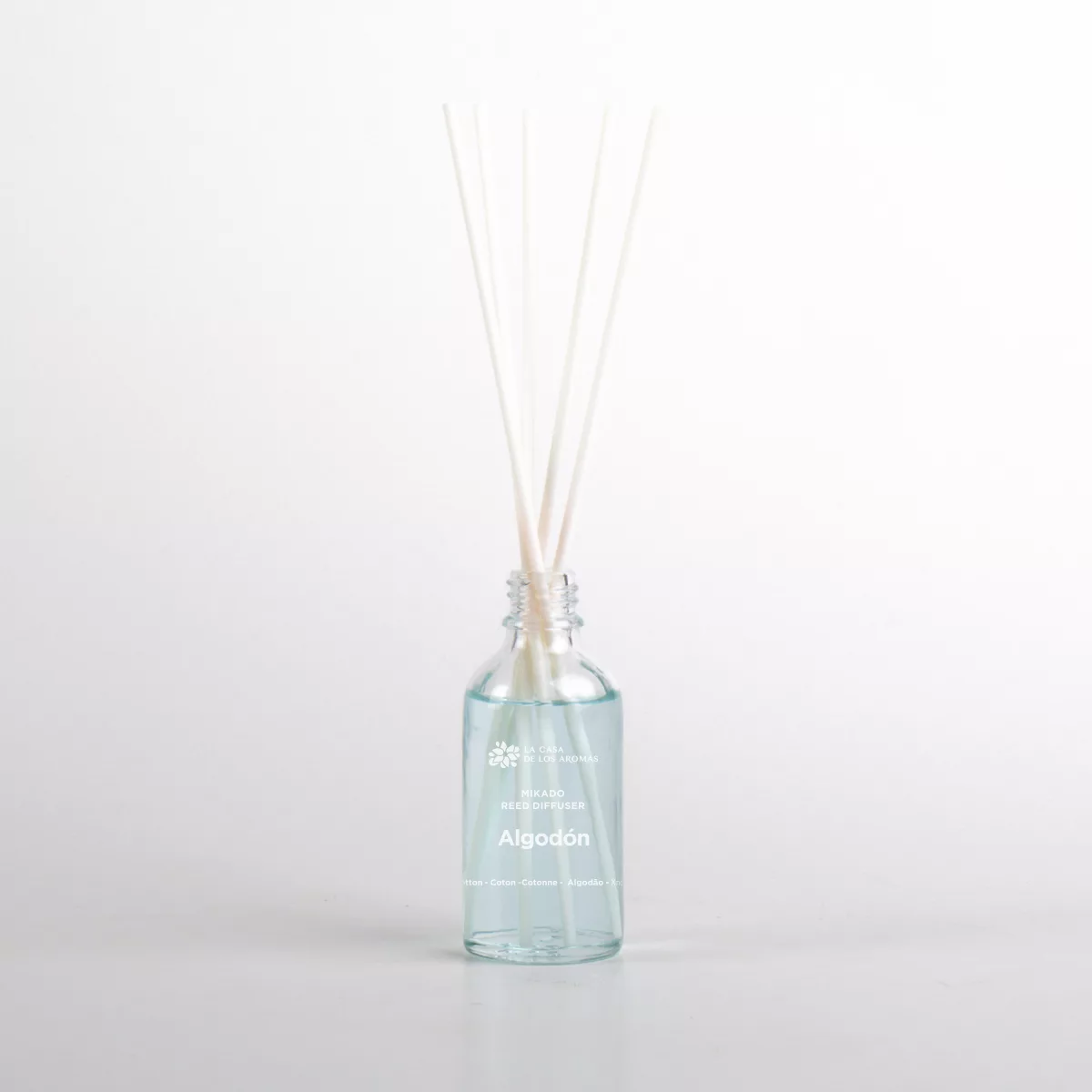 Retirar el tapón de la botella. Colocar las varillas en el recipiente para que absorban la fragancia Mikado Intense Flor de Algodón. Girar boca abajo las varillas para aumentar la intensidad.