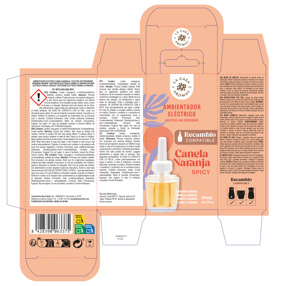Canela naranja: Fragancia cítrica especiada con notas de salida de yuzu, naranja y canela, que avanzan hacia un fondo con rosa y clavos de olor y terminan en un fondo de vainilla y miel.