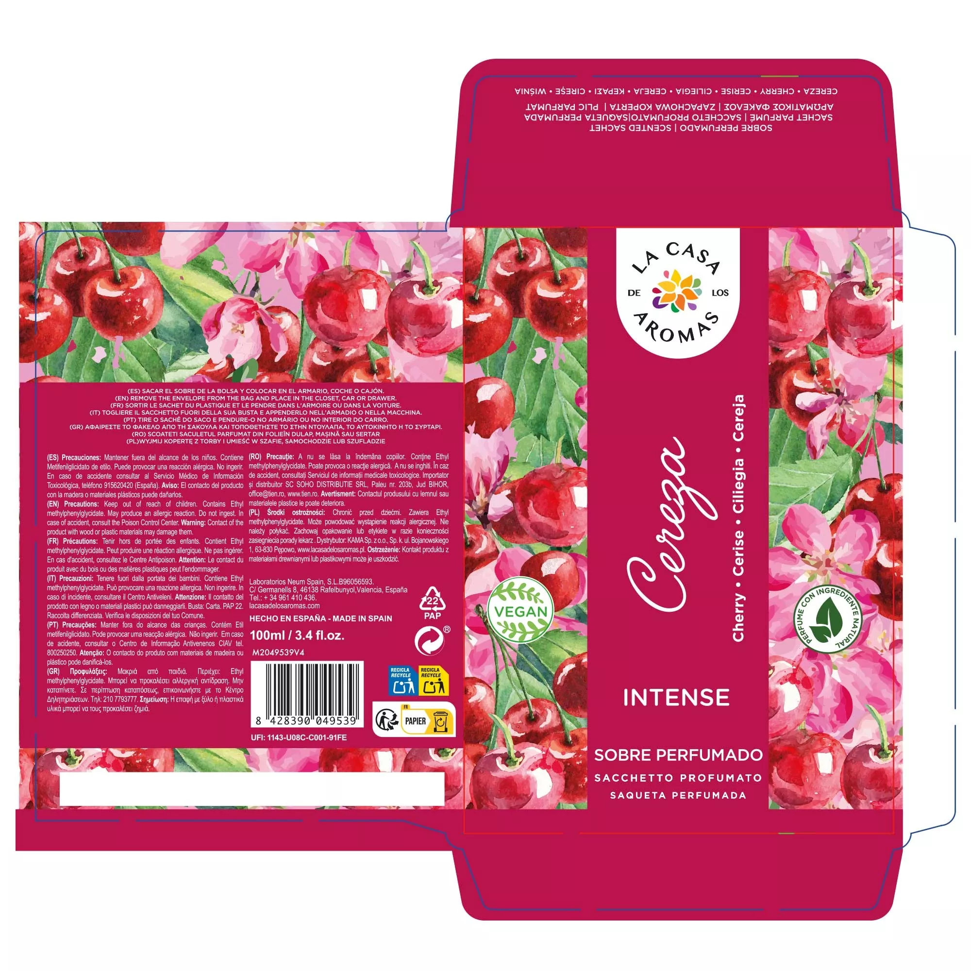 Sacar el sobre Intense Cereza de la bolsa y colocar en el armario, coche o cajón.